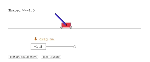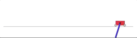 难度体现在,没有办法用线性控制器 (Linear Controller) 来解决。每一个时间步的奖励,都是基于小车到滑轨一头的距离,以及杆子摆动的角度。