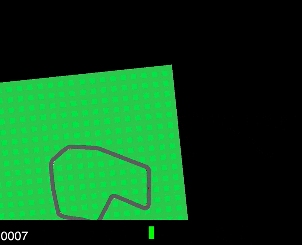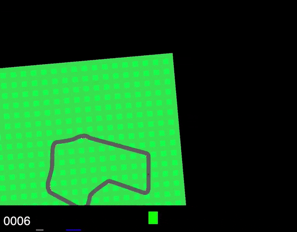 一辆车,由三个连续命令来控制:油门、转向、制动。目标是在规定的时间里,经过尽可能多的砖块。赛道是随机生成的。