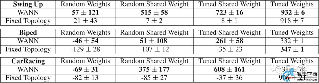 WANN与传统的固定拓扑网络相比,可以使用单个的随机共享权重也能获得更好的结果。